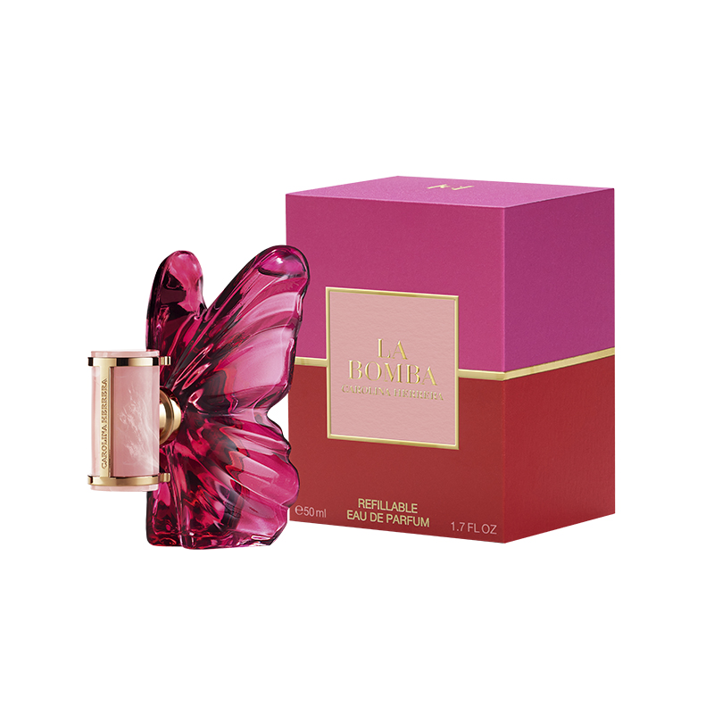 Alegre, sensual y de espíritu libre, La Bomba te invita a desplegar tus alas y vivir tu vida con energía y a tu manera. El frasco en forma de mariposa de La Bomba es una obra maestra escultural. El cristal de tono fucsia y una piedra inspirada en el cuarzo rosa están coronados con una tapa dorada Insignia.