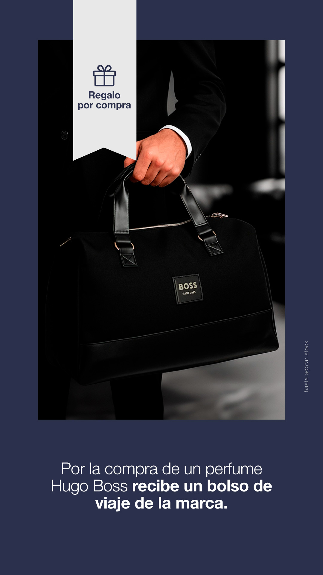Por la compra de un perfume en la marca Boss llévate, un bolso de la marca.