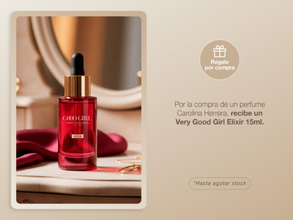 Por la compra de una fragancia en la marca Carolina Herrera, recibe gratis un very good girl elixir 15 ML